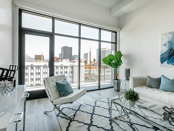 Long balconiesFloor to ceiling windowsKitchen islandBathed in lightOpen layoutsAmazing views of dtlaElevated ceilings