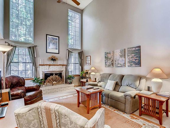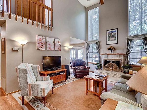 Welcome home to this desirable end unit with a two car attached garage! Open layout boasts a dramatically vaulted family room with a wood burning fireplace, the perfect space for entertaining or just relaxing at the end of the day. Bright kitchen flows into the dining area with access to the deck, backing to the greenbelt with mature landscaping and the walking path. Good sized upstairs master features an alcove that overlooks the family room, a private full bath and walk in closet. The secondary bedroom is serviced by a full hall bath with laminate floors. Central air, main floor laundry and an unfinished basement with room to expand.