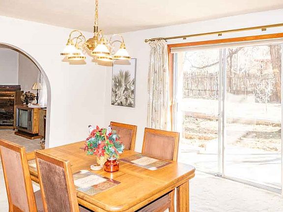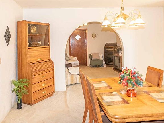 This property is just minutes away from all the main stores, banks, restaurants and gas stations in Espanola. It has a beautiful rock wall along the front. The property also comes with 0.37 acre of water rights, a private well and some lovely mature trees and bushes including evergreens, fruit trees, lilacs and rose bushes. There is a two car detached garage with a heated room that is currently set up as the laundry room and even has a shower. The home is mostly adobe and is well built. It will need a little bit of TLC but has so much potential and is just waiting for someone to come make it theirs!