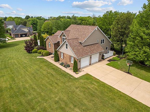 Completely updated 4 BD 3.5 BA home in Greenbriar Hills Subdivision. Sitting on large corner lot this property has almost a full acre and is located between 2 golf courses. With over 5300 sq ft of living area this elegant home is spacious and inviting but still has a homey feel. New custom kitchen cabinets with granite counter tops, new hardwood floors, two gas fireplaces, central vac, newer roof and siding, composite deck, inground pool, sound system with speakers also in pool area, oversized 2 car garage and sprinkler system. All bedrooms have walk in closets. Main floor master suite and main floor laundry. Finished walk out basement has large family room, office, storage area and golf cart room and leads out to pool area with 23X12 pool house and outdoor fireplace/oven/grill/bar.