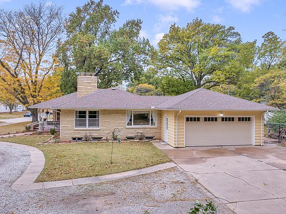 A MUST SEE Mid-Century Style home in NW Newton! The lot is over 1/2 an acre, beautifully landscaped, fully fenced, with an oversized pergola patio, permanent fire-pit area, circle drive, storage shed, newer roof, and IRRIGATION WELL. The interior of the home is impressive. With over 2000 square feet on the main floor alone, you will feel the spaciousness in every room. Walk into a formal living room with floor-to-ceiling windows bringing the outside in! Original HARDWOOD FLOORS throughout the main level. The living room and formal dining room are anchored with a gorgeous 2 way stone fireplace. As you would expect, BUILT-INS everywhere. YOU WILL LOVE THE KITCHEN! Sunny and bright. So many cabinets. Open to the dining room with a pass through butcher block counter. Darling breakfast nook , big windows in dining area and above sink with lovely views of the backyard. Granite countertops, cute open shelving, glass accent cabinet doors, large pantry with modern sliding door, ALL APPLIANCES. Laundry on main floor, washer and dryer included. The basement is fully finished and an entertainer's DREAM! Beautiful wet bar, full game room with fireplace and Snooker table (included) Family/rec room, hobby room or perfect home gym space, full bath, bonus room finished for a guest room, and still plenty of designated storage space. EXCEPTIONAL!