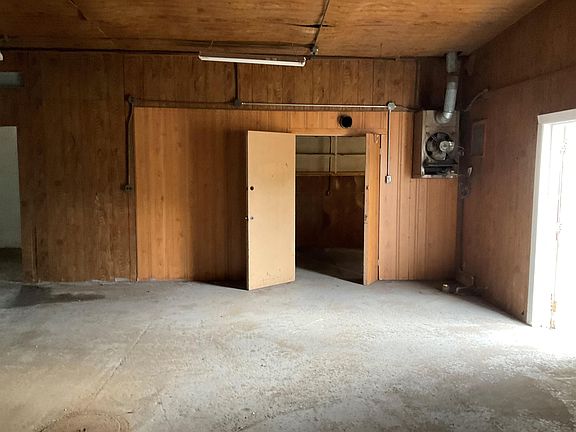 2 bedroom 1 bath 1 story home, located on a corner lot. Full basement, 1 car garage attached, currently used as a family room/breezeway has overhead garage door. 3 car dethatched concrete block building 40.6 x 34. 10' doors 9' sloped ceilings has ceiling heater. Sold As Is, No warranties
