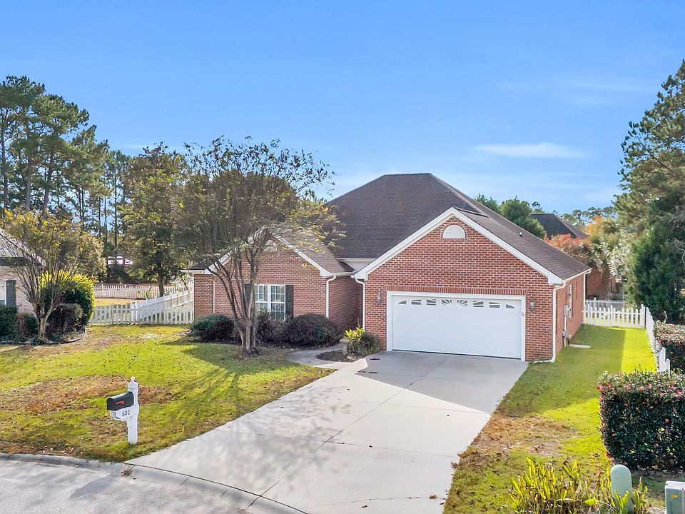 Welcome home to this exceptional 4-bedroom, all-brick residence located on a quiet cul-de-sac in the desirable Spring Lake community of Carolina Forest. This meticulously maintained home boasts recent updates that will surely impress. The spacious interior features a beautifully renovated kitchen with new cabinetry, granite countertops, Whirlpool appliances, and fresh flooring throughout. The main bedroom has been enhanced with a luxurious new shower, dual vanities, updated mirrors, and new lighting for a modern, spa-like feel. The open-concept layout offers vaulted ceilings and an abundance of natural light, creating an airy and inviting atmosphere. The private, fenced backyard provides a perfect outdoor retreat, offering plenty of space for relaxation or entertaining. In addition, the living room has been freshly painted in a soft off-white/gray tone, giving it a bright and contemporary look. Other updates include a brand-new hot water heater for added peace of mind. Spring Lake is just seven miles from the beach and minutes from shopping, dining, and top-rated schools in the Carolina Forest district. The community offers excellent amenities, including a clubhouse, pool, and playground, all within a well-maintained neighborhood. This home is truly move-in ready, offering comfort, style, and convenience. Schedule your showing now!
