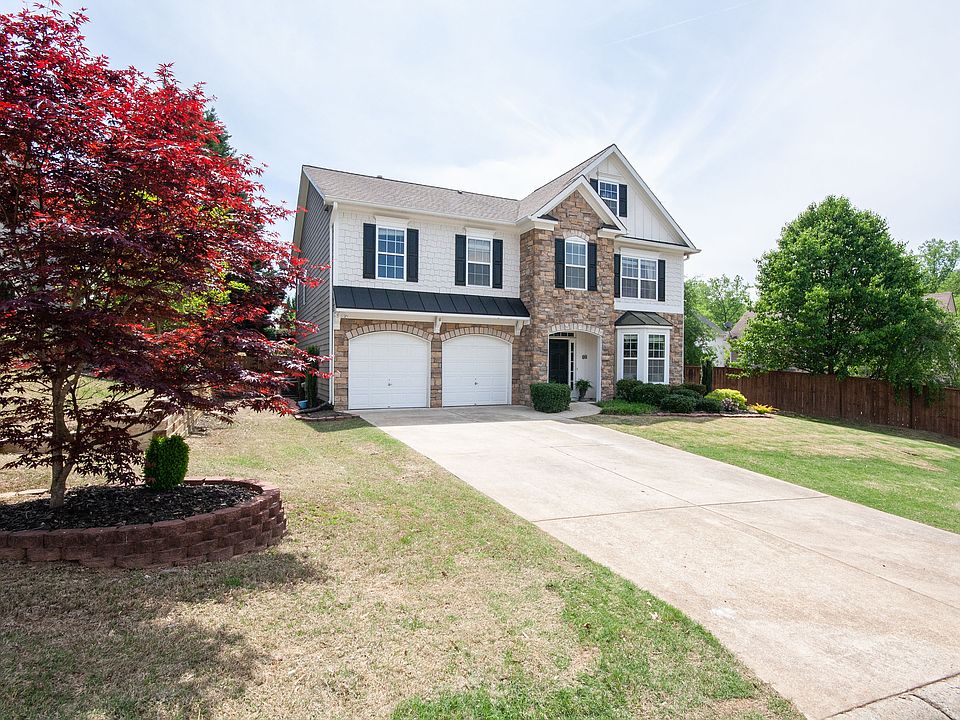 Priced to sell!!! This lovely 4/2.5 Craftsman home is a must-see! Open foyer welcomes your guests into formal living space, alive with color and charm! Spacious kitchen boasts white cabinets, eat-in area, island space, and beautiful granite counter-tops. French doors open up to beautiful, private fenced backyard, with large deck perfect for entertaining or Sunday grilling! Kitchen opens up to family room, complete with cozy fireplace. Bonus area upstairs is perfect for office, playroom, or extra living space. Over-sized master suite features sitting area and spacious master closet. Colorful guest rooms are waiting to be customized for your family. Conveniently located, minutes from Hickory Flat and Canton Marketplace!