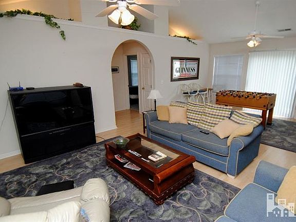 Great 3 bedroom 2 bath split floor plan home w/ a privacy fenced backyard. The open common areas boast laminate wood flooring throughout the spacious living room & formal dining area. The Kitchen features a long bar top, lots of counter & cabinet space, & a pantry. The master suite has private access to the patio & a full bathroom w/ his & her sinks & a tub/shower combo. The large, privacy fenced backyard features a cement patio, mature palm trees, & tons of room to entertain, run, & play. Also features a separate laundry room, tile in the kitchen & foyer, and an attached 2-car garage. Community boasts a pool & volleyball court.