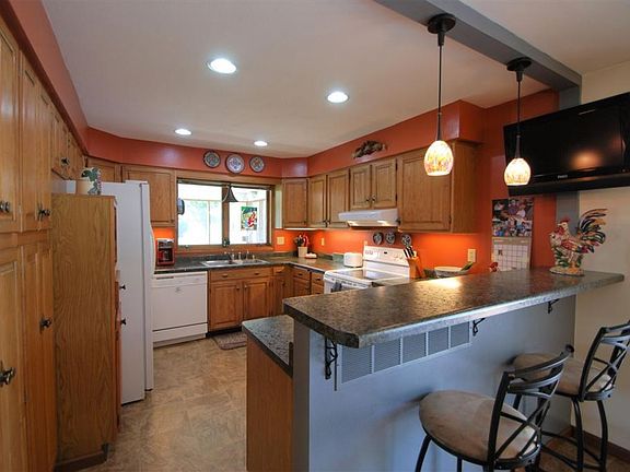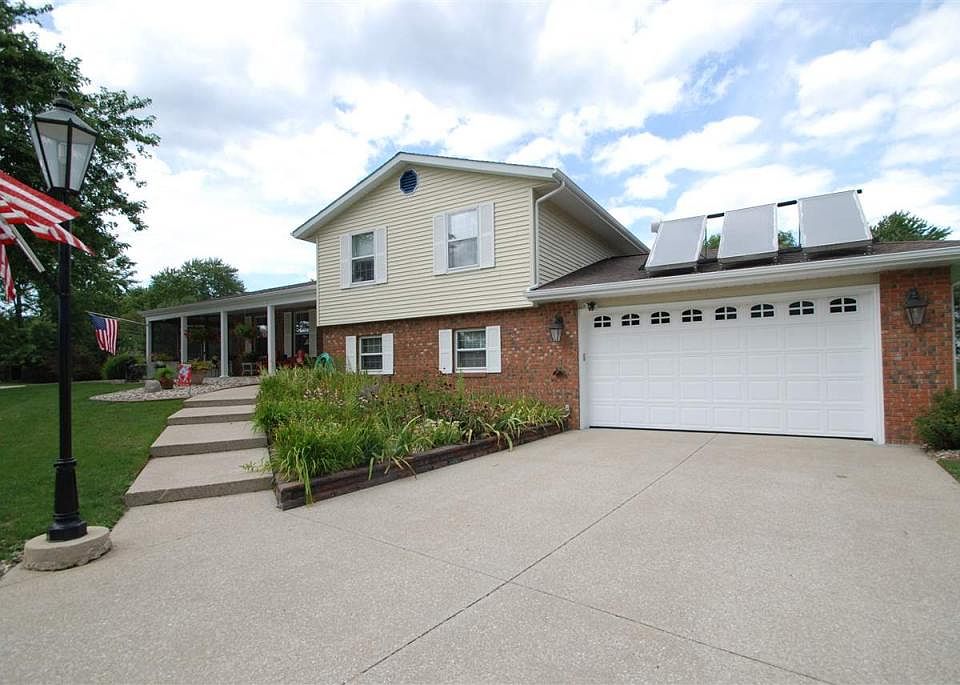 This lovely family home is truly a respite from the stress of daily life. Located within a mile of Northridge high school, in a lovely neighborhood, on the cul da zak at the end of Staci Lane, looking out on pasture, fenced yard, mature fruit trees, screened porch, large deck, hot tub, all there giving you that feel of a genuinely healthy place to grow a family community. Inside a newer open concept remodeled kitchen, with breakfast bar, lots of cabinets and modern master suite, large family room, security system, central vacuum, solar heated hot water and many extras all to excite the vision. Come and see why you need to call Middlebury your home.