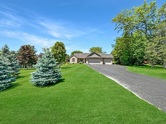 Introducing a remarkable home custom built in 2007, nestled within the serene Dakota school district featuring stunning landscaping, outdoor space and immaculate interiors. This meticulously maintained property boasts an open floor plan, allowing for an abundance of natural light to illuminate every corner. Step inside and be greeted by the spacious and inviting living spaces, perfect for entertaining guests or enjoying quality time with loved ones. The large finished 3 stall garage provides ample storage space and ensures your vehicles are well taken care of. Surrounded by a private setting, this home offers a tranquil escape from the hustle and bustle of everyday life, situated on .84 acres. The pride of ownership is evident throughout, as the owners have taken excellent care of the property. Don't miss the opportunity to make this exceptional home yours. Schedule a showing today and experience the comfort and beauty it has to offer.
