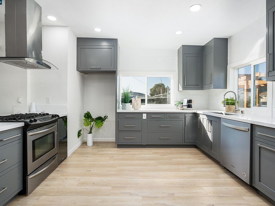 A fully renovated BRAND NEW single family home on an expansive corner lot that is fully gated. Plenty of street parking and open, gated tandem driveway parking for 2-3 vehicles. Brand new laminate floors, stainless steel appliances, modern cabinetry, countertops, and finishes throughout the home. Brand new paint and recessed lighting make the space feel brighter and more spacious. Outdoor space for entertaining with a newly constructed gazebo. Close proximity to BART, freeways, and a short drive to downtown Oakland, Lake Merritt, Oakland Airport, and Oakland Coliseum.