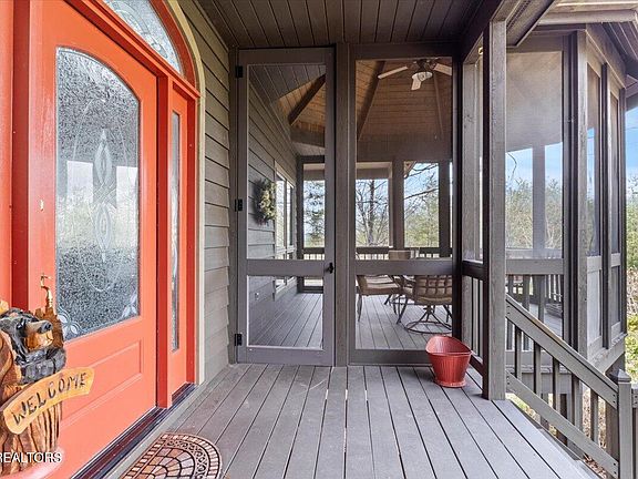 Looking for a quiet place in the Smokies? This gorgeous rustic home is beautifully positioned on a private 1+ acre wooded lot with pretty woodland and mountain views A winding concrete driveway leads to this remarkable home, quality built by the McDougall Bros. 802 Stonegate is a custom home that has always been a PERMANENT RESIDENCE but it can become a VACATION HOME or an INVESTMENT VACATION RENTAL if desired! One of the unique features is the octagon shaped screened porch which feels like a tree house! The family room has soaring ceilings, wide plank chestnut floors, and a fireplace with gas logs. The light filled kitchen has cabinets with pull outs, newer appliances, and granite counters. A handy pantry is close by. There is a breakfast bar and a dining room with a mountain view! The primary bedroom is located on the main floor and there are two large bedrooms upstairs. One of the bedrooms has a private balcony which is a peaceful place to enjoy a cup of coffee or a glass of wine! Windows are plentiful throughout the home which makes it easy to enjoy the pretty views of the mountains, the woods, and wildlife. This house was built for the enjoyment of the outdoors...there are wrap around porches on the main level and the screened porch is a great place for gatherings! The lower level has been finished with a living area, kitchenette, full bath, and lots of storage. It functions as a suite ( the septic was approved for a 3 bedroom home) and it would make an excellent recreation room. A chair lift was installed for easy access from the basement garage. Located in the beautiful sought after Stonegate Subdivision which is just minutes to restaurants, shopping, and the Great Smoky Mountains.
