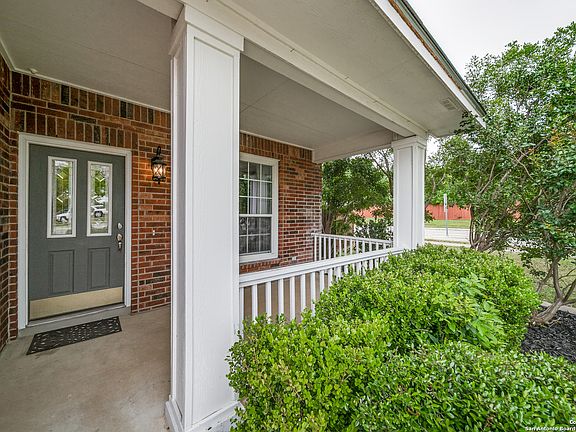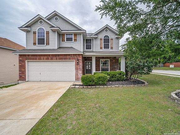 Charming, Spacious, Corner-Lot Home. The front covered patio and architectural details create great curb appeal. Landscaping keeps patio deliveries hidden. The soaring 2-story entry, crown molding, and tile floors provide elegance and functionality. The flex space inside the front door can serve as a dining room, home office or play place space. The living room is wired for surround sound to enhance your entertainment experience. The open concept space provides a seamless flow into the breakfast and kitchen spaces. The kitchen features white cabinets, an island, breakfast bar, and window bench seat. Upstairs high ceilings make every room spacious. The enormous primary bedroom will wow you with the space! The ensuite bath is bathed in light from multiple windows. It features a garden tub, shower, and double vanity. The custom walk-in closet and linen closet provide excellent storage. Outside the generous 14x17 deck provides ample outdoor living and entertaining space. A shed provides extra storage and can be converted to a workshop or she-shed. Pride of ownership in apparent by the gently worn condition and updates including garage workbench/storage area, and HVAC plus partial duct replacement in 2014. Back and street side fence scheduled for replacement in May 2024. Easy access to 151 ensures a short drive to Sea World, Lackland, and Alamo Ranch for shopping and entertainment. This home offers a combination of comfort, convenience, and entertainment options.