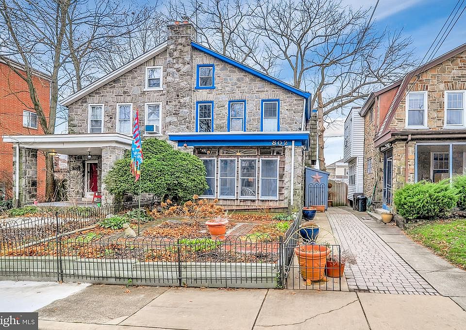 This lovely light filled stone home in the village-like neighborhood of the Triangle is just full of character and rooms, even outdoor rooms! The front perennial gardens, flanked with hairpin fencing flow right up to the warm and inviting enclosed 3 season front porch, and also expand just past the sunroom portion of the breakfast room, over the deck and back gardens with one of the city's biggest box elder trees, to the sheds and hardscaping. The first floor has inlaid hardwoods while the second floor has beautifully refinished heartwood pine. Besides being generously sized, the living room has that classic corner stone fireplace, deep sill large windows, and an open flow to the dining room which is also filled with windows (all windows are replacement throughout the house), and is open to the kitchen. Besides having stainless appliances, the kitchen is expanded to include a wonderful open breakfast and sunroom and a good amount of storage. The partially finished lower level has a tiled full bathroom and laundry area. There are currently four bedrooms on the 2nd floor, all with extra storage built in. The 2 front bedrooms were actually a single large room, and the present dividing wall could easily be removed. While the hall bathroom has original tile, it is in excellent condition and back in style, with a skylight and heat lamps. The third floor, with all its character, could be used as another bedroom as it too has lots of storage, and what a vantage point with windows and a skylight. There is a new main electric panel, and numerous repairs and upgrades following the seller obtaining a pre-sale inspection. This is just such a charming home in a highly rated, community oriented, friendly neighborhood.