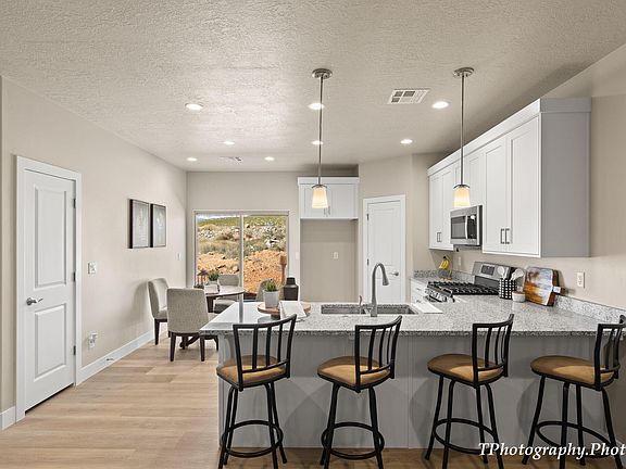 Adorable 4 bedroom townhome! 2 Car Garage with small private backyard including artificial grass. Great location near schools, biking, hiking and much more! 40 Minutes from Zion National Park. Finishes include custom cabinetry, stainless steel appliances, granite tops, tile shower/tub surrounds, upgraded fixtures and flooring! Come see for yourself! HOA will be established soon with minimal fees TBD for maintenance of small common area landscaping. Backyards not quite done but will be within the month. Photos of unit 806 (right next door) but finishes are the exact same.