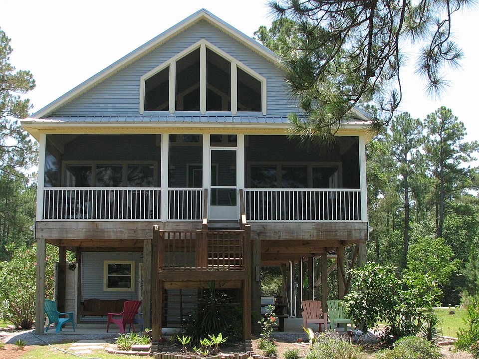 Elevated home on the Intracoastal Waterway. Built in 2005, this home has 4 bedrooms, 2 full baths and open concept living. Two levels with large fourth bedroom or bonus room upstairs. Large modern kitchen with panoramic views of the water. Southern pine flooring in great room, kitchen and baths. 10 x 30 screened porch with tile floors. WOOD PANELED INTERIOR ELEVATOR!!! Elevator is wheelchair accessible. Fully paved under house with parking for 3 cars, large storage room, entertainment area and outdoor shower. Furniture is negotiable. Stackable washer and dryer to remain. All kitchen appliances remain. Energy efficient HVAC less than 4 years old. Metal roof. 12 x 24 inground pool. 30 x 30 covered pier on canal with boat lift, water and power.