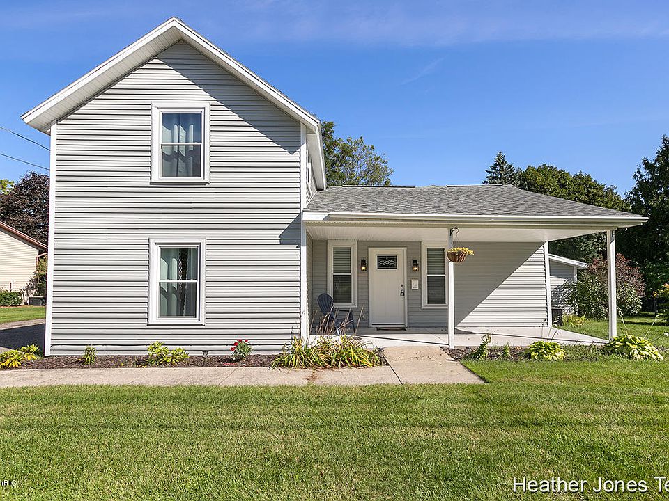 Completely remodeled Traditional 1.5 story home located on Greenville's West side. Modern farmhouse style! 3 bedrooms, 1 bath, possible 4th bedroom or office. Main floor laundry. Beautiful kitchen with subway tile backsplash, double ovens, and built in cooktop. Large dining room. Fresh paint & new flooring throughout. Brand new roof and siding. Central air, fenced in backyard. Covered front porch, 24x40 detached garage. Large Lot, size 99 x 152. Walking distance to High School, and close to shopping and Flat River Trail!