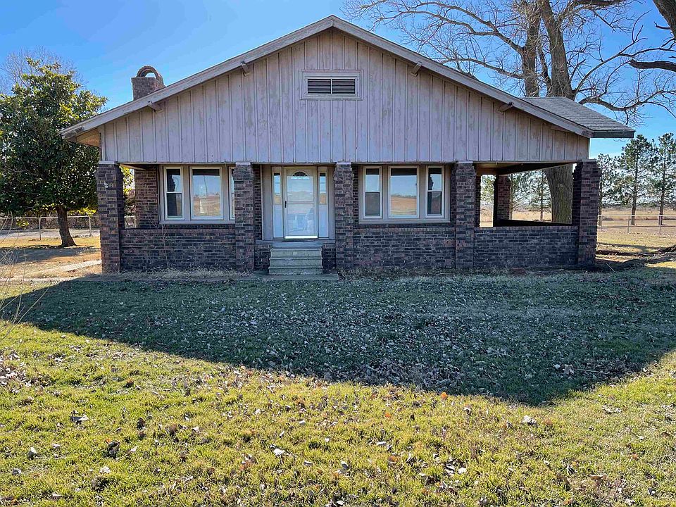 This adorable home has the dreamiest front porch! Don't miss out on this lovely property! 1.9 acres mol, large living area with beautiful fireplace, large open kitchen, tons of natural sunlight, 3 bedrooms, 1 full bath (double sinks, shower, tub, toilet), oversized garage, inside utility, and SO MUCH MORE! 1706 sq ft per OK ASSESSOR Property is being sold "AS IS"