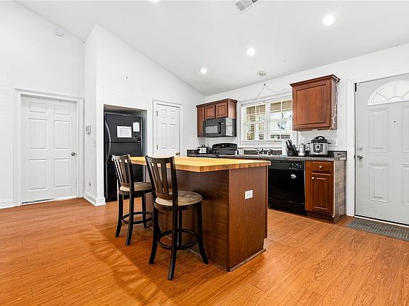Eagles 97 is one of the few units located in a cul-de-sac! Providing extra privacy and space for the exterior - to go with the already spacious interior! These units are perfect for student living and great investment properties. The value of the units continues to grow year after year. The spacious floor plan begins with an open kitchen concept that leads you into the large living area. The living area has simulated hardwood floors. As well as, high vaulted ceilings. Unique custom features with cabinets install in the laundry room to provide more storage space. Each bedroom has its own attached private bathroom and NO CARPET! You'll want to spend plenty of time outdoors with the large front porch and private back patio! HOA includes exterior maintenance, lawn care, and water.