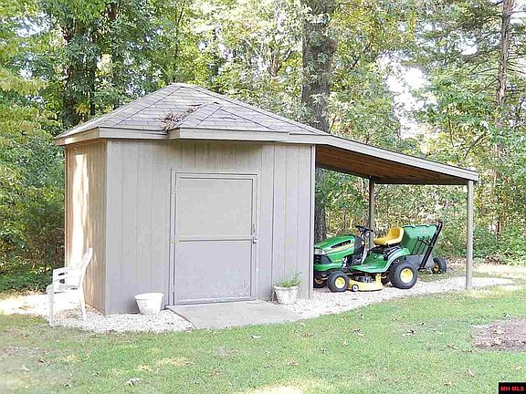 Great location as the only home on the city block. Walking distance to groceries, pharmacy, hardware, store & restaurant & Bull Shoals Lake. 2 bd rm 2 bth rm, sitting on 4 lots is in move in condition. Open floor plan with a country flame wood burning fireplace in the living rm. Lg eat-in kit w/plenty of cabinet space. Laundry room with 7' pantry, extra closet space & a mstr bed rm suite with walk-in closet and Jacuzzi tub, shower & his/her vanity. Nice level yard with utility shed & deck.