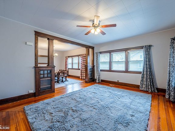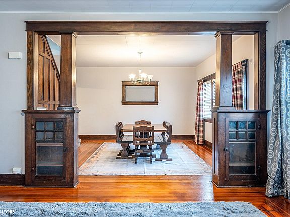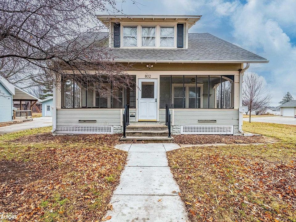 Step into the charm of this Craftsman-style home! Ideally located within walking distance to the school, this house is filled with character and practical updates. The roof is about 10 years old, and the heating and air systems are 9 years old. You'll love the original woodwork, wood floors, and updated kitchen, as well as the convenience of main-floor laundry. The layout includes 1 bedroom on the main level, 3 bedrooms upstairs (2 with walk-in closets), and a full partially finished basement with a bathroom. Enjoy relaxing on the screened-in porch or utilize the detached garage for your storage needs. Appliances stay, making this move-in ready gem perfect for its next owner!