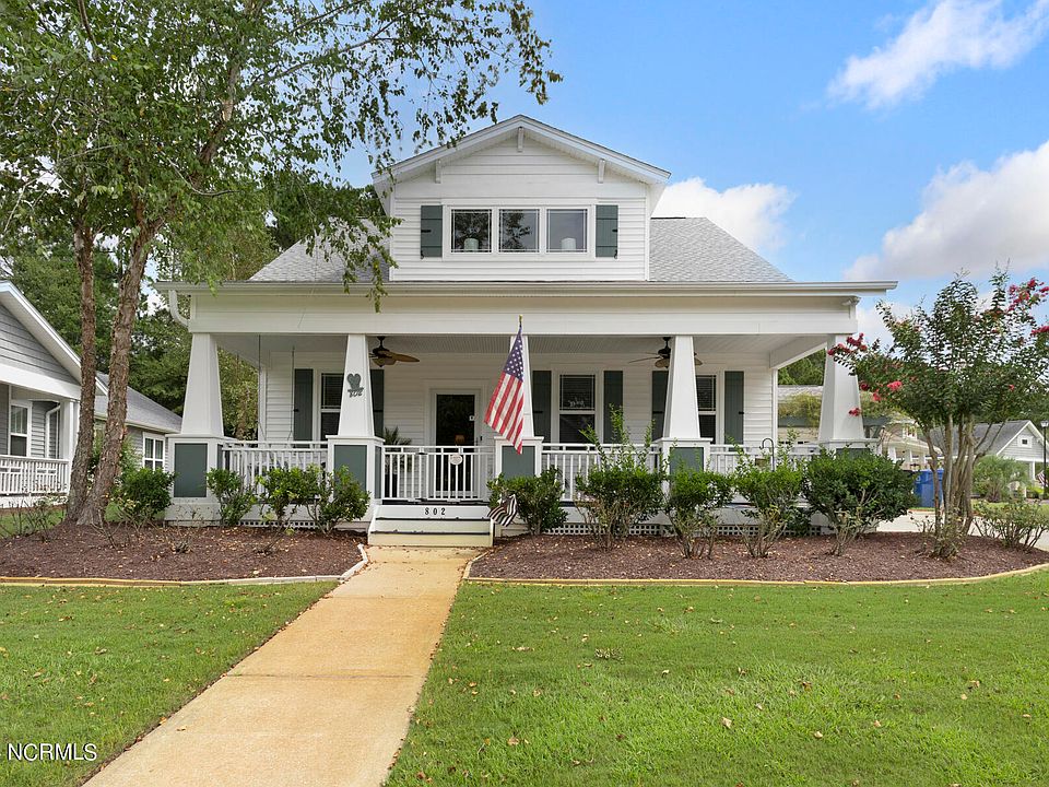 Stunning TWO story Cottage! This particular floor plan is hard to come by! Experience luxury living like never before with this highly-desired Cottage style home, just moments away from the beach! Prepare to be captivated by the irresistible charm and elegance this property exudes. The curb appeal alone will draw you in! Situated on a huge lot next to a tranquil HOA maintained parcel, this yard is dreamy! As you step inside, you'll be greeted by a breathtaking entryway adorned with pristine & durable LVP flooring, setting the tone for the impressive floor plan that awaits you. Discover the epitome of perfection in this flawlessly maintained home. Every aspect, from the ultra-high baseboards to the clean crown molding and fresh Agreeable Grey paint, has been meticulously attended to, leaving no detail overlooked. The kitchen seamlessly combines sophistication with practicality, boasting updated lighting, exquisite Quartz countertops, custom Snowbound painted cabinets, and white subway tile backsplash. In addition to ample cabinet and countertop space, the kitchen also offers a custom built-in. Indulge in luxury and relaxation by retreating to the lavish Primary Bedroom suite. Boasting two separate vanities, a revitalizing walk-in shower, and a spacious soaking tub this bathroom offers an unmatched pampering experience. Upstairs you will find a gorgeous sitting area with custom built-ins and two spacious bedrooms with expansive closets joined by a Jack and Jill bathroom. Experience the tranquility of the secluded backyard, which provides ample privacy and features the exceptionally well-maintained yard. Alternatively, take a moment to bask in the serenity that envelops you while relaxing in the screened-in back porch or on the custom extended patio that includes a stunning patio set for immediate enjoyment. Significant updates & upgrades have been done at this home. Updates include a Fortified Roof installed in January 2024, one of the HVAC units replaced in 2023, custom laundry room cabinets & shelving, a renovated powder room, extensive leveling of the backyard, and a fence complete with decorative solar lighting. This pristine home is conveniently located half way between Jacksonville & Wilmington, in the sought-after subdivision, The Neighborhoods of Holly Ridge. This is your chance to own a piece of everyday vacation type life, where you're only moments from the beach and nestled in a neighborhood with sidewalks, streetlights, a picnic area, and even a small community book exchange!
