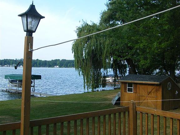 Cute as a button best describes this lake front cottage with a 1100 sq ft guest house across the street. Guest house has 2 car attached garage. Lakefront cottage has 2 beds, large living area and kitchen on over 100 ft of Palmer Lake frontage. Large 2+ detached garage for all the lake toys. Great waterfront view. Guest house has 2 beds plus a bunkhouse area for all the weekend visitors. Central air & all appliances. Newer roofs and updates on both. 2 tax ids--Palmer is a 450+ acre all sport lake in south central lower Michigan.