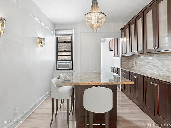 Expansive 1 Bedroom Co-Op in Prime Bay Ridge. This Pre-war unit has been meticulously renovated with no expense spared. Located on the fifth floor, the western exposure provides beautiful views of the New York Bay and picturesque sunsets.Upon entering the foyer, you are welcomed by two elegangt chandeliers. You instantly notice the abundance of storage as five closets, with rods and shelving, line the corridor. The massive living room is kept bright throughout the day with two large windows. Its large open space allows it to be furnished in a multitude of ways. The King-size bedroom is situated in a corner which allows for dual exposure, north and west. It has two generous closets. The kitchen, which is split into two rooms, has been redone with top-of-the-line finishes. It features custom cabinetry, granite countertops, glass-tile backsplash, and a large sink with garbage disposal. One room has a large, centered island which can double as an everday dining table. The Stainless steel apliances are comprised of a large refrigerator, full-size dishwasher, microwave, and a 5-burner range with glass oven door. The bathroom has been updated with a beautiful light fixture, rainfall showerhead/hand shower combo, provence-style vanity, toto toilet, and mother of pearl mirror with matching vanity lights.8020 Fourth Avenue is a well maintained Pre-War Elevator Co-Op in the heart of Bay Ridge. It has an elegant lobby with Art Deco styling. The amenities include a gym, laundry facilities, bike storage, additional storage, and a furnished courtyard with two grills. The building has a live-in super. It is located a couple blocks from the R Subway line and is close to all of Bay Ridge's shopping and dining options. Other transportation is serviced by Express Buses into Manhattan, the NYC Ferry, the BQE, and the Belt Parkway.