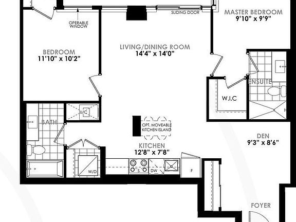 Welcome to Connectt Condos. This well-designed 2-bedroom + enclosed den, 2-bathroom suite offers a bright and highly functional layout ideal for modern living. One of the largest layouts in the building, featuring approximately 1,026 sq ft of total area as per builder plan.The open-concept living and dining area is filled with natural light and includes a walk-out to a private balcony, creating a comfortable space for everyday living and entertaining. The modern kitchen provides ample counter space and storage. The primary bedroom features a walk-in closet and private ensuite, while the second bedroom is well-proportioned and conveniently located near the main bathroom. An enclosed den with a door offers excellent flexibility for a home office, nursery, or guest space.Additional highlights include two full bathrooms, in-suite laundry, and a welcoming foyer. Conveniently located close to shopping, parks, schools, transit, and major highways. An ideal opportunity for both end-users and investors.
