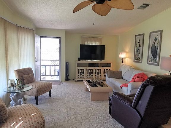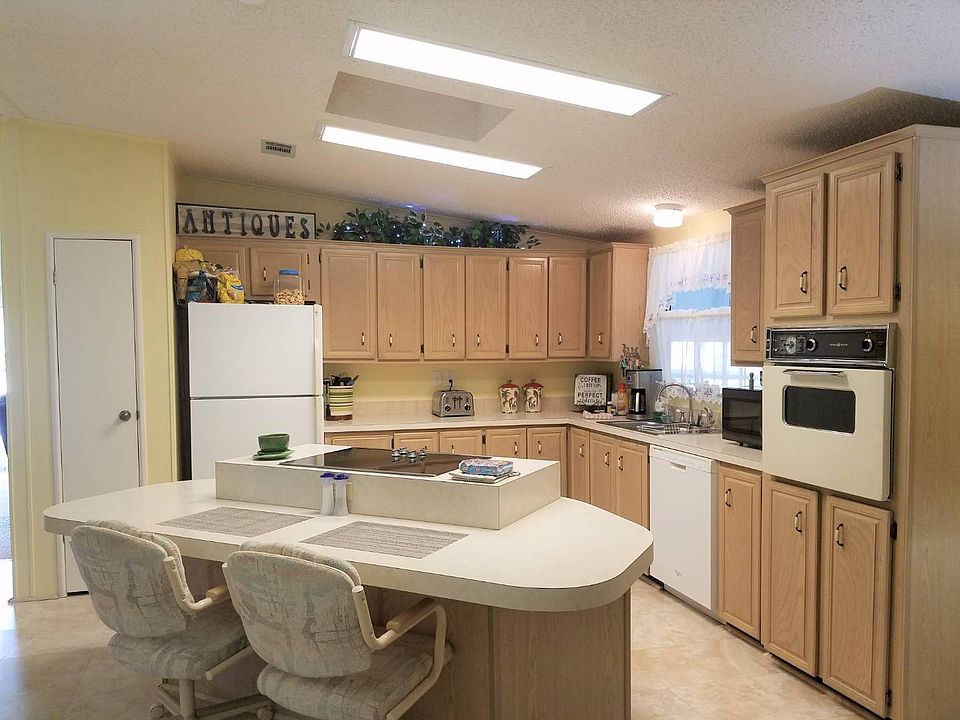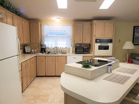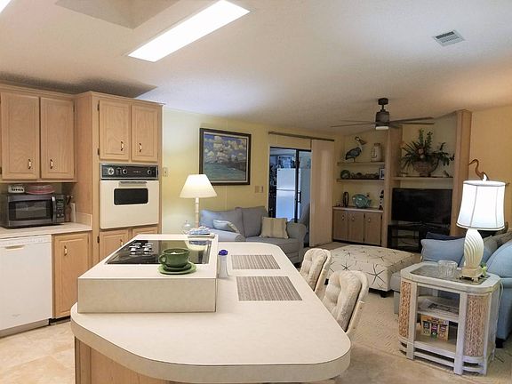 JUST REDUCED $49,900- Partially Furnished. This lovely large 1989 Palm Harbor home, comes Partially furnished with 1,456 sqft of indoor living space. The home also has a side enclosed Florida room and a side screened in Lanai. If you are looking for a large home with a ton of storage space, look no further! Step down into the spacious storage shed with the washer and dryer. Plenty of room for you beach gear and holiday décor. Next to the laundry area is an additional storage room. Walking in through the sliding glass doors you enter the open den and kitchen. The kitchen has plenty of cabinet and counterspace. Nice sized pantry for extra storage. This is a cooks dream kitchen. Your guest could hang out and relax in the den area while you prepare your special meal. The dining room and living room are open. The living room has large front windows giving you extra lighting. Vaulted ceilings throughout making it feel nice and grand. The dining and living room wall have cabinets and shelving clear across. The wall makes a beautiful bonus to display your décor and store items underneath. Down the hall is a small study area with cabinets above. The guest bathroom is a jack and jill with a tub/shower combo. Spacious guest bedroom with a step-in closet. Large master bedroom with his and her mirrored closets. As you can see this room can easily accommodated a king-sized bed, night stands and dressers with plenty of room to still move around. Ensuite master bathroom has a garden tub, step-in shower and a large vanity. New sump pump installed underneath the home. This home has been very well maintained and is priced right. Call today to make this your Florida Dream Home! ACT FAST & CALL TODAY!! Don't forget to ask about the FINANCING available on this home. Colony Cove is an age qualified (55+) five-star resort community of manufactured / mobile homes. The "Cove" boasts 5 clubhouses, 5 heated pools, a riverfront pavilion and private fishing pier, a private marina, a fenced dog park (very pet friendly), tennis, shuffleboard, new pickleball courts, 2 new fitness rooms, 24-hour patrol, clubs for every interest, and much more. There are daily planned activities throughout the park. Bottom line, if you get bored here, it's your own fault!! The lot rent in Colony Cove is based on the homes' location. While the monthly rent may not be the lowest around, it's by far the best value for the money. Not only does the monthly rent cover all of the amenities of the community listed above, it also covers almost all other monthly expenses such as; water, sewer, trash pickup, all property taxes, lawn maintenance. . .pretty much every monthly expense except electricity and internet. The current lot rent on this home is estimated at $931.10 per month. All listing information given to us is considered appropriate and reliable but always recommend Home Inspections by independent companies who have a background and thorough understanding of manufactured homes. We cannot guarantee the accuracy of information given to us or the condition of the home. Lot rents are determined by the community office not our company.