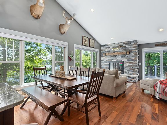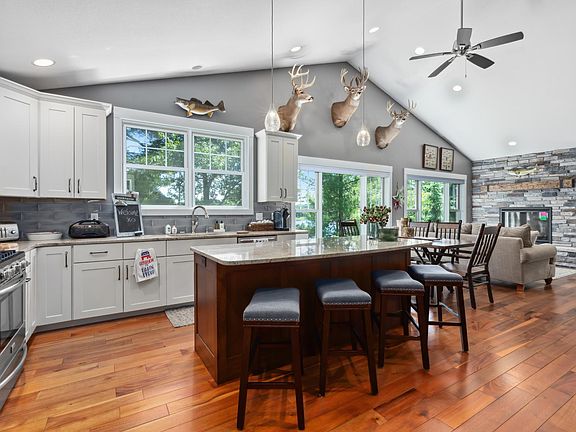 Discover lakeside living at its finest with this stunning 3-bedroom, 3-bathroom home built in 2015 on the sought-after Gull Lake Chain. The open-concept main level boasts gorgeous hardwood floors, vaulted ceilings, and a brand-new gas fireplace, creating a warm and inviting atmosphere. The kitchen is designed for both style and function, featuring granite countertops, a spacious island perfect for gathering, and plenty of storage.