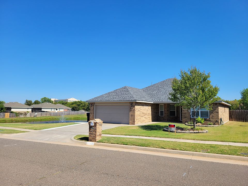 Welcome to your new home. This house has freshly painted walls. Luxury vinyl flooring though out. Storm shelter in floor of the 2 car garage. Large fenced in back yard. Newly poured back patio. Plenty of storage. Pond with fountain just outside of home that's stock full of fish. Corner lot, 5 minute drive to Tinker AFB, and walking distance to Heart Hospital. Awesome neighborhood to raise kids with a park right down the street. Make this your new home today! Renter pays all utilities