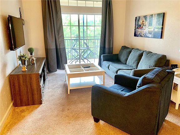 FULLY FURNISHED Spacious 3 bedroom 2 baths condominium with an amazing conservation view from the balcony. Only 15 minutes away from Disney Property. Includes access to an amazing clubhouse with a gym, movie theatre, pool. Less than 5 minutes away from dozens of restaurants, supermarkets and gas station. This condo is located in a beautiful gated community Champions Gate area. It is very spacious and comfy! It is equipped with a large kitchen, along with plates, cups, cutlery, toaster, blender and just about anything else you would need to cook. There is a washer and dryer in the unit There are flat screen TV's in every bedroom and in the family room.
