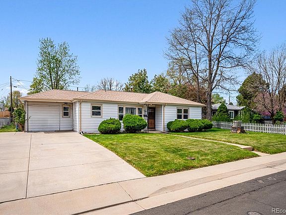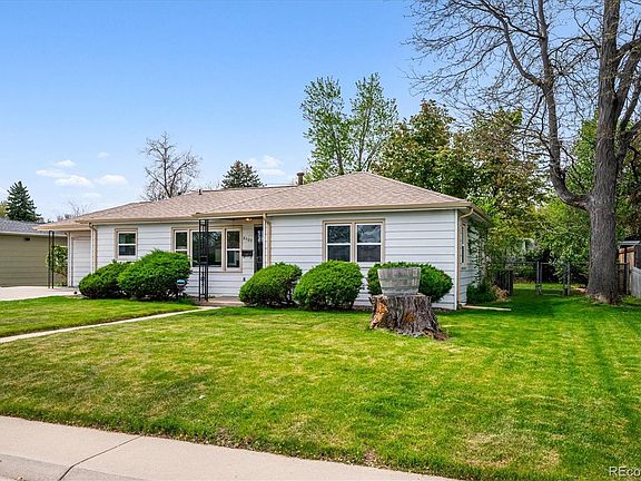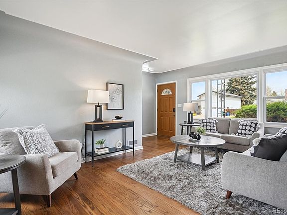 Located on a .21-acre lot in a cul-de-sac street, this ranch style home has been updated and is move-in ready! For those looking for one-level living, this house is perfect with no stairs and no basement! Walk through the front door and the first thing you’ll notice is the beautifully refinished hardwood floors! The living & dining rooms have coved ceilings. The kitchen has painted white cabinetry, solid surface countertops, custom tile backsplash, and stainless-steel appliances. 3 bedrooms, one of which could be converted to a primary suite. Remodeled bath with walk-in shower. Laundry with washer & dryer. Brand new carpet. Newer interior paint and light fixtures in the past 2 years. Newer roof, furnace, and A/C in the past 8/9 years. Vinyl windows. The spacious fenced back yard has a covered patio, garden shed, lilac trees, and ample space for a garden! Concrete parking pad big enough for 4 cars, and/or an RV. Conveniently located near multiple restaurants, lounges & shopping experiences, Wheat Ridge Recreation Center, Jeffco schools, the RTD bus line, highway access, and more!
