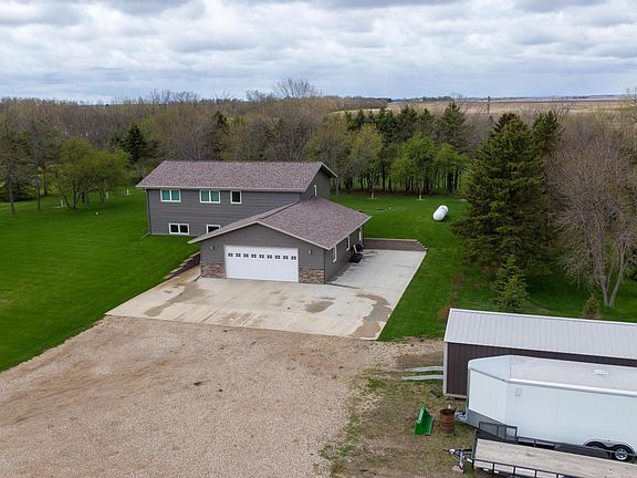 Here is your opportunity for country living just a few minutes from town! This beautiful 4-bedroom 3-bathroom home sits on a private 2.5-acre lot. Some of the many features include quartz countertops and custom cabinetry throughout the house, triple pane windows, steel siding, floor heat on the main floor, & a 32x14 shed for storage. The large yard has tons of potential with plenty of room and many newly planted trees! Call your agent today!