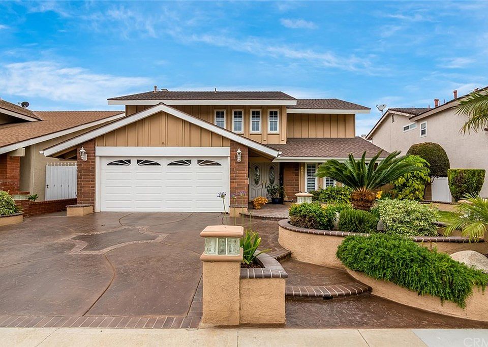 Attractive pool home in the Shadow Run (Warmington) tract of La Palma. Beautifully landscaped planters and driveway add to the curb appeal. Stunning double entry doors welcome you into your new home. Living room and family room are highlighted with custom window treatments and plantation shutters. Built-in bookshelves enhance the cozy fireplace. Entertaining your guests is made easy with a wet-bar, and the large dining area. Tasteful (no pun intended) kitchen is designed with breakfast-bar island, granite, very large pantry, and recessed lights. Appliances include microwave, dishwasher, and a Kitchen-Aid stove that doubles for convection cooking. This open floor plan is nicely accentuated with eye-catching six-panel doors. At the end of the day, relax in your master suite. Spacious in size with walk-in closet and a remodeled bathroom with separated vanity area. Three additional rooms for bedrooms, hobbies, office, or whatever your needs. Each wardrobe closet provides built-in shelving to maximize storage. Handsomely remodeled bathrooms with clear-glass shower enclosures, tastefully selected tile, vanities, and fixtures. Completing this home is the masonry design work on the stucco block-wall fence and planters that accentuate the pool. Convenient location, fantastic schools (including Oxford Academy, with testing and space available limitations), parks, shopping, restaurants, and transportation. Get your invitations ready for your housewarming party!