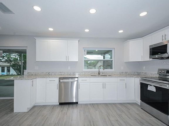 Priced to sell! Guaranteed jaw dropper!! Low taxes! Not in a flood zone! And not, I repeat, **NOT IN A FIFTY-FIVE AND UP COMMUNITY!!** Impeccable, COMPLETELY REMODELED, modern dream home listed just for you!! You must see this flawless masterpiece! Every single thing is brand new and absolutely no expenses were spared. THE FOLLOWING ITEMS ARE BRAND NEW AND IN HIGH-END SUPERIOR QUALITY... All new energy efficient windows and sliding glass doors. 40 inch wood cabinets. Custom granite. Energy efficient Samsung stainless steel fingerprint resistant appliances. Stainless steel undermount sink with smart faucet. Disposal. New electric panel and all new electric. Marble bathroom wall tile. Added bathtub. Shower. Both exhaust fans. Toilets. Vanities. Mirrors. Chrome bathroom fixtures. Shower floor tile. Sinks. All new plumbing throughout. All new landscaping, including: sod, mulch, plants. New irrigation on a well pump. New sprinkler system box with energy efficient timer. New insulation in the attic. Multiple walls removed for an open floor plan. All new drywall. Orange peel ceilings. Brand new smoke detectors. Shelving and doors in all 5 closets. Doors all new. Interior and exterior paint. Wood look modern tile throughout entire home. Entire house ceiling fans, light fixtures inside and out including: switches, plates, and outlets. Door hardware: locks, handles, hinges. 5 ¼ baseboards throughout. Aluminium wiring replaced with copper wiring. New AC grille and return. New soffit. 280 square feet of living space added by enclosing the Florida Room with vinyl windows (already paid for and awaiting installation) and a brand new split ac unit, fully insulated for low electric consumption. Even the garage is renovated, and comes complete with washer & dryer and new utility sink. Roof and AC 2005 and fully inspected and serviced to perfection. Low HOA includes ground maintenance. Minutes from great restaurants, shopping, movie theatre, parks, fishing/boating, bowling, roller skating, arcade, trampoline and amusement center, beaches and golfing. NOW IS THE TIME!!! RATES AT A HISTORIC LOW!!