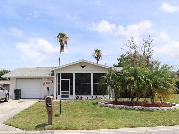 WELL MAINTAINED HOME! 2 Bedroom, 2 Bath, 1 Car Garage home in Jasmine Lakes with GREAT CURB APPEAL! Large Living room and Family room/Kitchen Combo. Kitchen featuring wood laminate flooring, view of lanai, plenty of storage and counter back splash. Master Bedroom features a private Master Bathroom. Screend front porch and back yard has a vinyl fence with patio for privacy. Plenty of storage space in the oversized 1 Car Garage. The driveway accommodates up to 4 cars with the EXTRA PARKING SPACES. A walkway on the garage side connects to backyard. Shopping, restaurants and medical facilities are close by. Hudson Beach and area beaches are within driving distance. THIS WILL NOT LAST LONG! Schedule a viewing today!