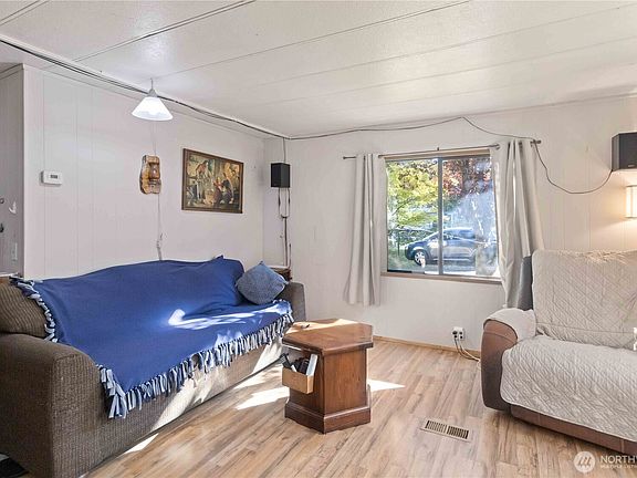 Located in a 55+ park, here is your opportunity to own a two bedroom, one bath 1971 mobilehome in a cute, quiet little 15 space community in Castle Rock, WA! With a wood stove in the living room, this home will be cozy and warm all winter; also has a dining area/kitchen combo. This home is ready for your personal touch and style. Newer interior paint in the majority of the rooms, newer vinyl plank flooring, some of the windows have been updated to double-pane vinyl. Viking Village MH Park has its own community water source, and each space has it's own septic (the septic for this home has been recently replaced). Make an appointment to see it today. Being sold AS-IS.