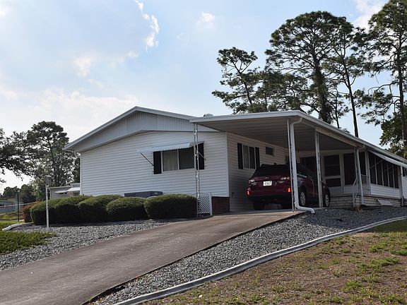 Good Opportunity! What this home has to offer someone doesn't come often..... and with some updating and TLC this home can truly be a one of a kind. The location alone conveniently located between the amenities and the guard house makes it very desirable....PLUS IT COMES WITH ANOTHER LOT THAT BORDERS THE HOME ON THE NORTHERLY SIDE! TAXES REFLECTS FOR HOME ONLY!! Reroof with a 30 yr dimensional asphalt shingle in 2004....HVAC in 2017 Vinyl Enclosed Lanai with sliding windows has a heat/ac wall unit, 11'x 22' shows in public records. A utility shed 11'x26' where the laundry area is also. Two driveways...one on CC Drive has a golf cart garage, carport and parking in drive with a walk way to front door. Second driveway is on Evermore and has Carport Parking and driveway parking. Kitchen cabinets are wood, kitchen has a center island and breakfast bar and is open to family room.....a huge mud room/pantry area is just off kitchen with access to guest bathroom. The guest bedrooms have nice step in closets and are separated at one end of the home from the Master Suite at the opposite end. The guest bathroom has a tub/shower combo. Seller just put in a one piece shower in the master bathroom and is very open to master bedroom. Come with an open mind and visualize what this place has the potential to be. Because of home age it is restricted to cash or seller may entertain owner financing with substantial down payment, terms to be negotiated.