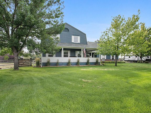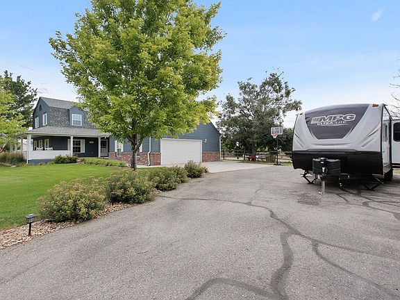 On over an acre, there's plenty of room for your boat/RV. Lovely updates to this home include a remodeled master bath, new carpet, new roof and updated kitchen. A hot tub, dog washing tub, and partially finished basement are just some of the amenities this modern farmhouse offers. Enjoy your wrap around porch watching sunsets behind the mountains and stay cozy during the Colorado winters by any of the three fireplaces. Come see this gorgeous 4 bed/3 bath home, located west of I25 with NO HOA!