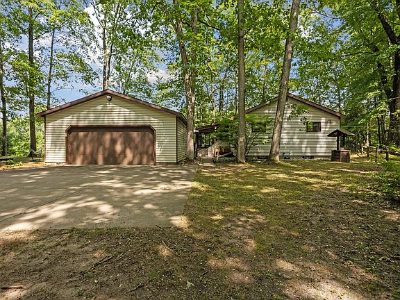 Breath taking view. Completely renovated kitchen. New flooring throughout the home. A double lot in a private setting overlooking the Big Muskegon River. This 2 bedroom, 1 bath offers a huge deck for entertaining. An oversized garage with a bathroom you could easily convert into a bunkhouse for your guest.