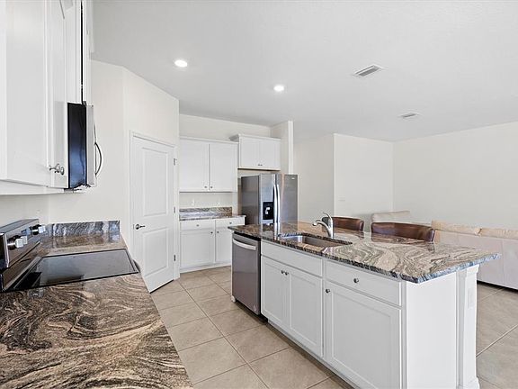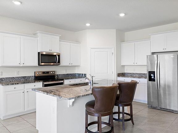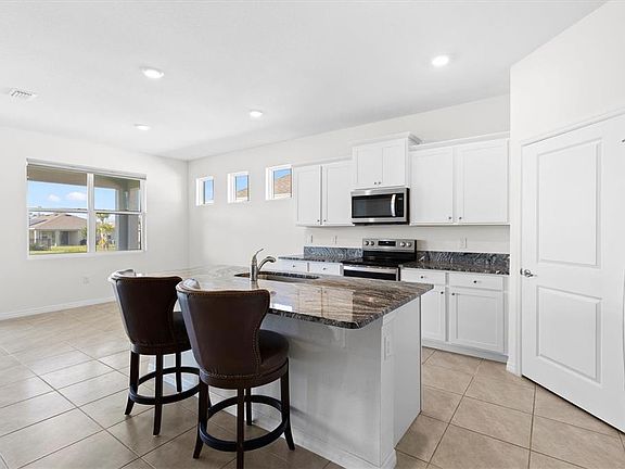 Stunning 4-bedroom, 2-bath Smart Home, nestled in the quiet neighborhood of Beaumont just off CR466A by Publix, Winn-Dixie, Banks, Lowe's, Home Depot, Target and over 20 restaurants and minutes to the Villages. Step through the covered front entry with convenient keypad access and into a spacious open and split floor plan that seamlessly connects the living areas. The kitchen features a breakfast bar, granite countertops, Whirlpool stainless steel appliances and walk-in pantry closet. Enjoy the luxury of a master suite with dual walk-in closets and a spa-like master bath complete with dual vanities, private water closet, and a glassed shower with a bench. the 3 addtional bedrooms share a bath with shower tub combo. Additional highlights include a covered back patio, ceramic tile in the public areas, carpet in the bedrooms. With a 2-car garage and an inside laundry room, this home combines style and functionality. Beaumont North is a gated community with an HOA. NO AGE RESTRICTIONS. The HOA amenities include a heated pool, bocce ball and pickleball courts, clubhouse with gym, and walking trail. Your $139 monthly HOA fee pays for Cable TV, Internet and Lawn/Grounds maintenance. Located close to The Villages, golfing, schools, shopping, restaurants, and easy access to major transportation thoroughfares. Families will appreciate the home's proximity to Wildwood Elementary, Middle and High School as well as Middleton Villages Charter School Campus just 12 miles south.