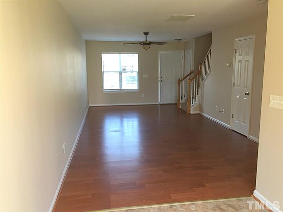 Nicely maintained townhome! 5 min from Wake Tech & 10 min from Triangle Town Center. Open floor plan downstairs features living/eating area which overlooks patio. The 2 spacious bedrooms located upstairs have vaulted ceilings & engineered hardwood. Attached outdoor storage room; assigned parking spaces w/ plenty of visitor parking. Neutral interior is a blank slate for the new homeowner to add their own personality. Great investment property or perfect starter home.