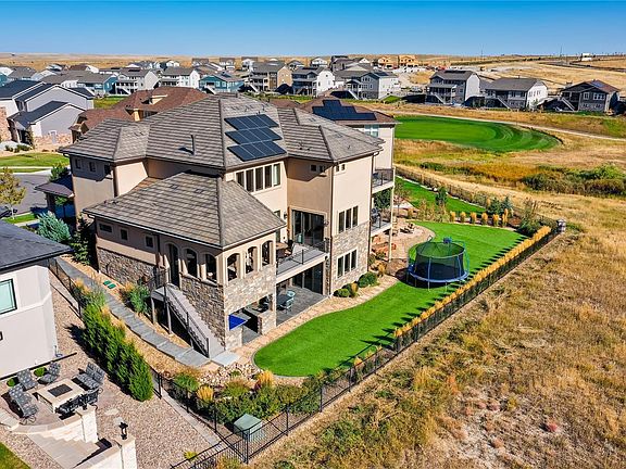 Near-New, All Custom Beauty in Blackstone Country Club boasts sweeping views of the golf course & Colorado landscape. Beautifully crafted architectural details & finishes of the highest level abound - no expense was spared in this well-crafted & meticulously maintained home. Open Chef's kitchen w/large island, commercial grade appliances, built-in coffee system, designer granite, artistic tile backsplash, walk-in pantry, butler's pantry & eating space. Main level study w/coffered wood beam ceiling & private enclosed deck. Elegant master retreat w/private balcony & luxurious spa bath featuring soaking tub & gigantic walk-in shower. Secondary bedrooms all offer en-suite baths. Expertly finished walk-out basement w/show-stopping full wet-bar, custom wine cellar, guest suite, exercise room & bonus room. Outside, enjoy 3 levels of decks/covered patios, professional landscaping, synthetic grass, garden area & secluded fire pit. Country club living w/easy access to DTC, Southlands & 470.