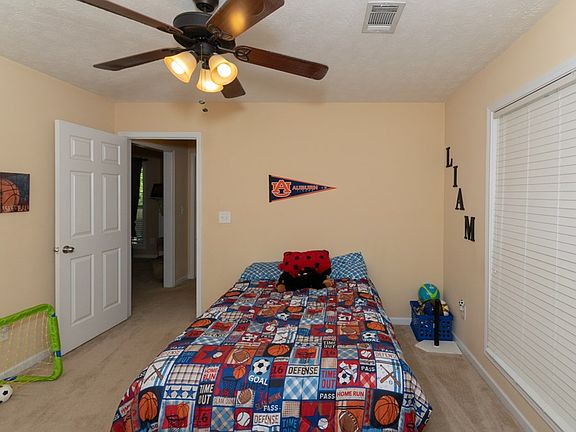 MOVE IN READY!!! This home is just waiting for you to move in. All brick one story home has been wonderfully maintained. Split floorplan with an open concept feel spacious with the vaulted ceiling. Master bedroom is large and opens to a master bath with separate shower and tub, his and her closets and double vanities. This home opens to a covered patio overlooking a fenced in flat backyard and a wooded area behind. Close to Flat Rock park, shopping and restaurants, this is a home to see!!!