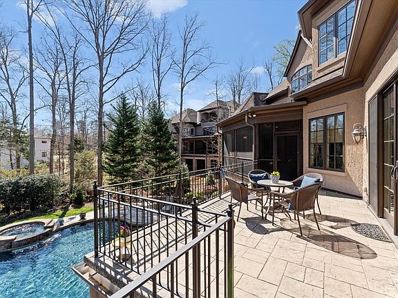 Back on the market due to no fault of sellers. Step inside this dream basement home& prepare to be impressed! Located in desirable Highgate the backyard private oasis has in-ground pool&spa. Elevator to all 3 floors.The spacious kitchen opens up to great room w/fireplace, quartzite countertops. Primary bedroom on main & desirable guest room on main. 2nd primary suite & 2nd kitchen in amazing basement. Gorgeous fenced back yard w/fire pit, pool, hot tub & grotto w/waterfall. Custom details inside & out: iron front doors, wood-stained study, coffered ceilings, vaulted beam ceiling in great room, updated kitchen backsplash, dual laundry rooms, 200+ bottle wine cellar, steam shower, natural split-face rock on basement bar, barrel ceiling in basement. Beautiful movie theater room down & media room up. 2nd kitchen w/fridge, microwave, dishwasher & stove. Turkish travertine in basement & around pool.Lots of storage.Original owners.Award winning Weddington schools.Close to 485 & Waverly.