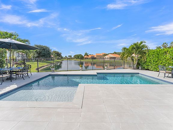 Enjoy peace of mind with hurricane-impact windows and sliding doors. Step outside to a stunning, newly installed in 2022 zero-entry pool and an extended tiled patio, both designed with heat-resistant materials, all overlooking a serene lake. This backyard is a true entertainer's retreat, perfect for gatherings with family and friends. Lower HOA. Two community pools ( Heated), a gym, and a tennis court. Close to many great restaurants, Town Center Mall, and Uptown Boca