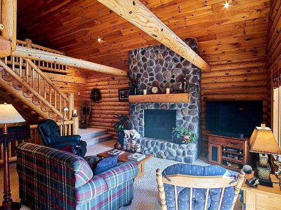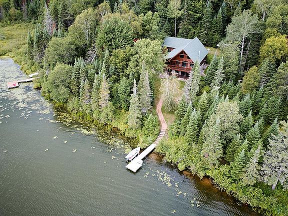 They all talk about it, but here you truly experience it: Peace and quiet. This quality-built full log home checks all the boxes; open floor plan, stone fireplace in a living room filled with lakeview windows, south facing views of Twin Island Lake, open loft, finished lower level with a walkout to an easy walk to the shore, fireplace in the lower level and an attached 2 car garage with a extra garage door so you can drive through. It feels like you are hidden in the deep woods, but you are only 11 miles from the bustle and amenities of Boulder Junction. Located in Frontier Lakes, you have access to stocked, private, unpressured lakes (Twin Island and Little Presque Isle) for full recreation, great fishing, plus trails to the forest, gate at the entrance for true Northwoods Privacy and Security. The most noise you will have are the loons and sandhill cranes. This is a gem waiting for you to discover as your private retreat.