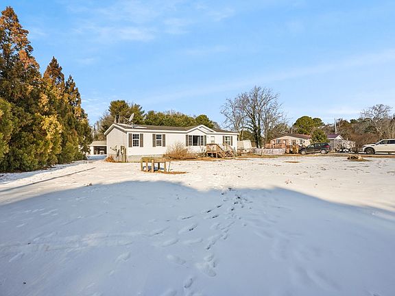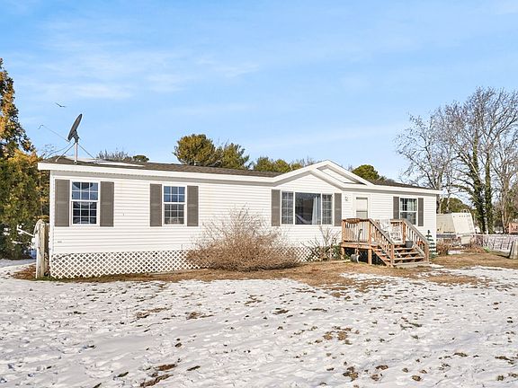 This charming ranch-style manufactured home sits on 2/3 acre in a peaceful country setting, featuring three bedrooms and two bathrooms. The spacious living room with LVP flooring and vaulted ceiling flows into a dining area ideal for gatherings. The kitchen offers oak cabinetry, a breakfast bar, and a pantry. The primary bedroom has a private bathroom, while two additional bedrooms provide versatile space. A full bathroom, laundry/mudroom, and a storage shed add convenience. Located near NASA Base and Chincoteague Island, it blends tranquility with easy access to local attractions.