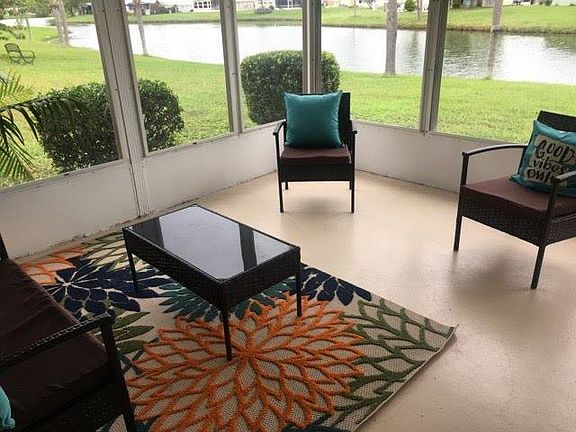 Do you want to see some of the most beautiful Florida sunsets ever? Well you will see them right from your backyard in this gorgeous waterfront home located in the award-winning age qualified mobile home park of Colony Cove in Ellenton Florida. This 2 bed, 2 bath, beautifully furnished, turnkey home is waiting for you. All you need are your clothes and your toothbrush and you can begin enjoying the Florida lifestyle . This home has so much to offer with three lanai's plus a back patio all with that gorgeous water view, you will be living and loving the Florida sunshine and lifestyle. This home is perfect for entertaining with plenty of room for family and friends. Updated with beautiful light fixtures. Beautiful modern furnishings. The wood look laminate floors in the bedrooms and living areas are stunning as is the ceramic tile in the kitchen entryway and bathrooms. All of the flooring was updated in 2019. The home features a shingled roof. The AC unit was installed new in 2017 and has a warranty until July of 2022. The exterior and interior of the home was painted in 2019 as were the walls and ceilings of the lanai's. Extended underground drainage has been added. You will enjoy the long driveway that can easily accommodate two cars plus a golf cart. This is a must see beautiful waterfront property. Don't miss out on this one! Give Tammy with INTEGRITY a call to schedule an appointment to see this beautiful home. Lot rent $1184 per month. All listing information is deemed reliable but not guaranteed and should be independently verified through personal inspection by appropriate professionals. Integrity Mobile Home Sales cannot guarantee or warrant the accuracy of this information, measurements, or condition of any property. Measurements are approximate. Lot rent is subject to change.