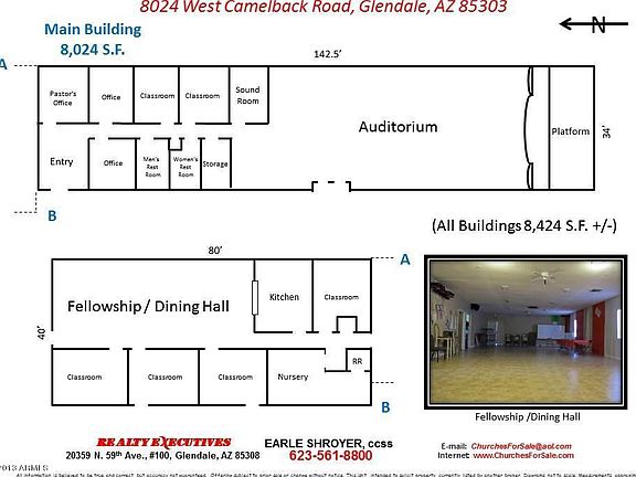 (Additional Parcel 102-09-026) An existing church facility with approximate 300 seat auditorium, sound room, offices, classrooms, nursery rooms, kitchen/fellowship hall, additional separate classroom building. Lots and lots of room to grow. Plenty of additional parking, beautifully landscaped, just freshly painted outside. All of this located on 4.82 acres.Preview on website ChurchesForSale.com, shown to qualified buyers by appointment only.