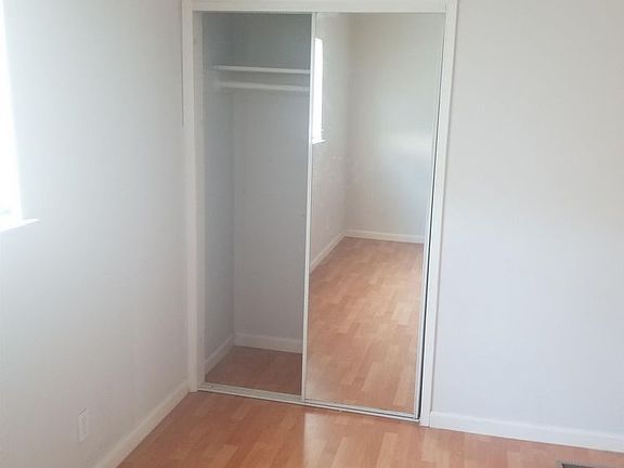 Bright front unit in triplex. Laminate and tile flooring through out. Kitchen has granite counters, under counter lights, stainless refrigerator, electric stove,disposal, microwave, and dishwasher. Motion sensor light in bathroom with custom tile work. Laundry hookups IN unit. Tankless water heater. Central heat. Off street parking for ONE vehicle. Shared yard. Water, garbage, and landscaping included. Close to public transit and freeway access.